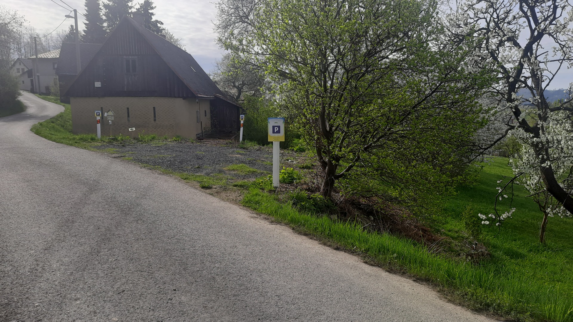 Parkoviště se dá pohodlně využít pro dvě auta. Cesta ke studiu je hned naproti parkovišti.
